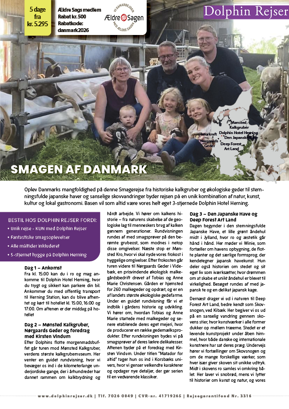 • Rabat på 500 kr. pr. person til Ældre Sagens medlemmer